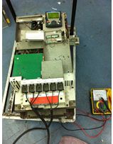 該變頻器清潔后,依次安裝整流模塊、逆變模塊、電容。然后連接件處理干凈,去除打火痕跡及生銹痕跡,安裝驅(qū)動卡,待整機安裝好后,測試,符合上電條件。給變頻器送電,開機、輸出電壓平衡,帶負載到額定電流,變頻器發(fā)熱也正常,該變頻器修復(fù)。