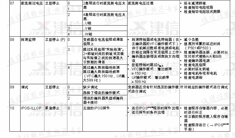 SEW變頻器故障代碼F07,F08,F09,F10,具體如下: