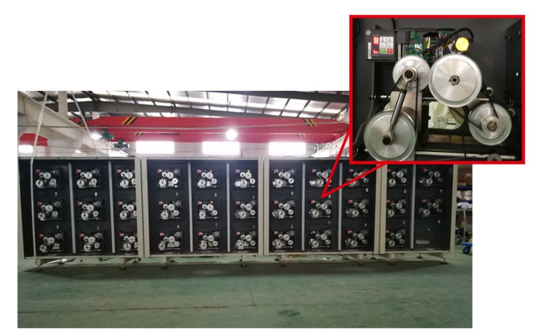 老式金拉線分切機分切速度慢 ,分切后的成品收卷用同一臺電機實現,1個電機帶動60個卷軸進行收卷,具有如下幾大缺點: